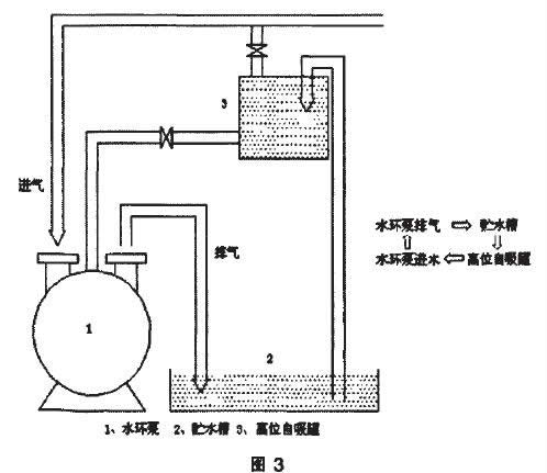 如圖3所示,水環泵進、排水形成了一個閉環循環,在水中按照一定比例加入除垢劑,使水環泵的排水參與循環使用,在解決結垢問題的同時,達到了節能減排的目的。此方法既可以單臺泵使用,也可以多臺泵同時使用。